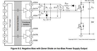 我的想法是尝试添加 ISO 驱动器 UCC21520-Q1 (可以支持20V VIN)来实现这 一点、您能否检查我们是否可以将 HS 和 GND 连接在一起来为 ucc21520输入引脚提供输入信号?