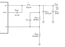 根据最大电流4A、Cout 位于数据表上(L:6.8uH、20.8 mΩ Cout:2 x 47 μF + 22 μF)。