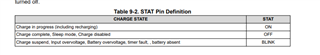 在测试过程中、我观察到另一种似乎相关的现象。 随着电池充电、电流逐渐减小、在某一时刻、LED 熄灭、然后重新亮起、之后似乎恢复充电。 这种行为会重复几次、最终我注意到 LED 进入闪烁状态。