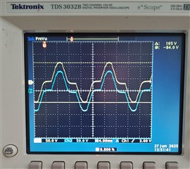 - 将 5 V 电源重新连接到产品、测得 VBUS 约为 5.05V。产品无法通电、REGN 保持在大约 0V