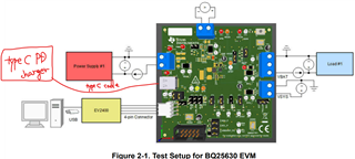 我们是否可以使用此 EVM 来检查 USB PD 充电器的电源功能、如下图所示? 如果我们需要消除测试设置、您能分享如何实施这些设置吗?