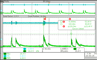 该设计用于 7.4V/6A 降压转换器。 伺服启动后、电流将达到 40A (50ms)。 MOSFET 会损坏吗? 是否可以激活短路保护?