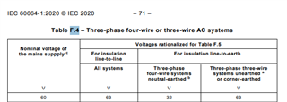 表 F.4 似乎讨论了交流线对地电压额定值: