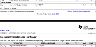 例如、R_LOL 可以根据 V_LOL = 0.07V(典型值)和 I_LO = 100mA 得出、从而获得该工作条件下 R_LOL 典型值= 0.7 Ω。