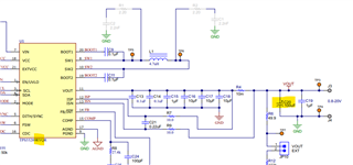 100μF 输出电容器位于 EVM 设计中的不同位置。 您能解释一下原因以及任何设计注意事项吗? 谢谢!