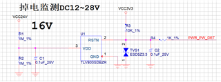 原理设计如上图第一张图片、用于输入电压掉电监测、输入电压用电阻分压做TLV803的输入电压、R1和R2都是1M电阻。μ s