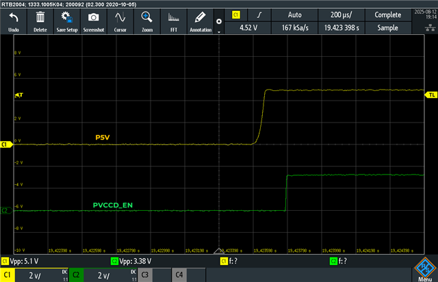 这是第二次使能信号到来时在 Fusion 中观察到的故障。 我们探测了 VDD 引脚 (5V) 到功率级。 最初获得正确的 5V 电压、然后启用到 5V、在冷复位中也会变为低电平并持续几毫秒、然后再次变为高电平。 可能由于 5V 变为低电平一段时间、我们会出现 VDD_UVLO 故障、因此 VR 不再开启。