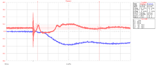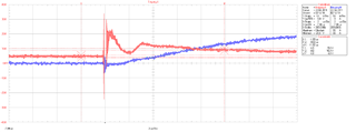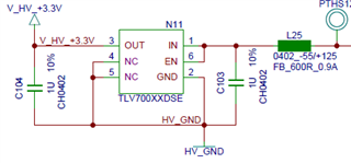 我们在 PDU (配电装置)的电气设计中使用 TLV70033DSE, 并测量从电源线(230V 交流)到 TLV700的5V 直流电源的电感耦合(当 PDU 的用户(如服务器)打开时)。 我们在输入线路(红线)上看到高达+/-40VDC 的过压峰值,持续几微秒。