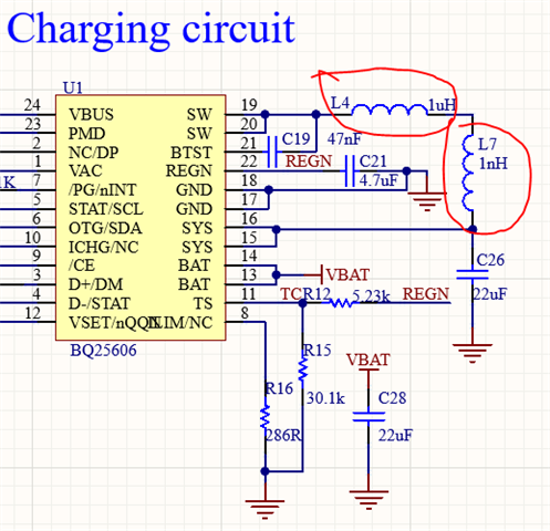 上一个项目保留了 L7 (1nH)以防止 CC 充电模式下的 EMI。