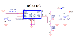我们使用升压转换器TPS6.1025万DRCR。 如 上所示的主要原理图: