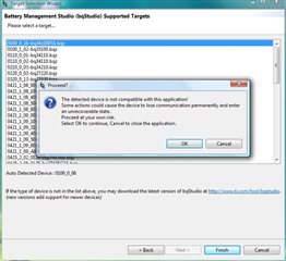 每次您最初下载 BQStudio 时、所有.bqz 容器的列表均来自。 BQStudio 之所以检测器件 0100_0_06、是因为它知道 IC 上当前的固件、但该数字与您最初下载 BQStudio 时获得的.bqz 不匹配。 在正确的固件中进行编程后、这不应该是一个大问题。 更新和获取所有最新.bqz 容器的最佳方法是获取 BQStudio 的最新版本。 但是、由于化学成分 已成功编程、我在您的当前应用中看不到任何大问题。