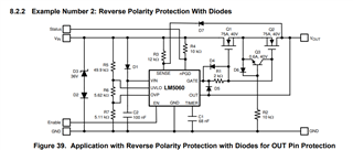 我们正在使用 LM5060进行设计。 它将提供过压保护和电池反向保护。 数据表包含以下反向电池保护电路(数据表中的图39)