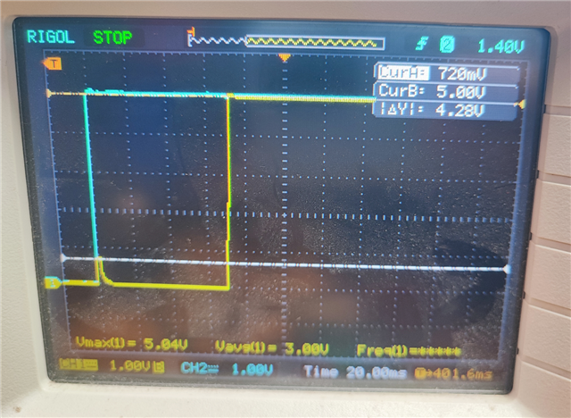 如果我在 IN 引脚上施加5V 电压、则不会对任何引脚放电。 波形如下所示、仍有一个2ms 的小脉冲、电压约为1.2V、但仍低于器件的逻辑高电平。