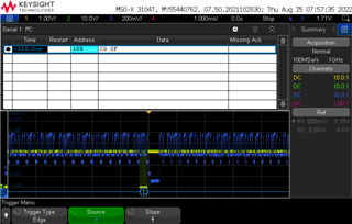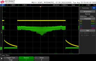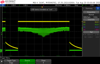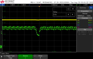 请参阅以下 LED ID 引脚电压的示波器捕获。 您可以看到截止第一个波形有闪烁、第二个波形没有闪烁、第三个波形有闪烁。