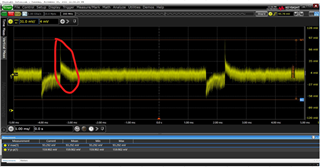 输入端存在电压尖峰、最大值可能为5.93V、这可能会损坏 WIFI IC。 我建议在 wifi IC 的输入端添加一个22uF 电容、之后、请帮我捕获满负载波形-在两个射频链上均为27db、以检查是否有任何改进。 此外、请确保0.1uF 电容器足够靠近 WIFI IC 的输入引脚。