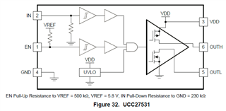 UCC27531/3/6/7/8数据表突出显示了分离输出特性[1]、但它似乎意味着 OUTH 和 OUTL 在开关瞬态之外处于相同的电势。