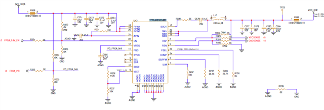 我在我的设计中使用了该降压为 FPGA 提供内核电压。 我的输出电压为0.9V、我们仅用于 FPGA 内核。 我们已将 RSP 和 RSN 与 FPGA 感应引脚连接。 FPGA 内核电压容差为8.7V 至0.93V。 我们已经在电路板中完成了 PI 仿真、我们仅获得大约0.855V 的电压。