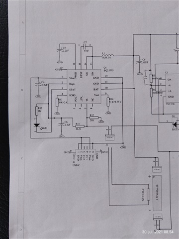 他已将充电电阻器的值从20K 更改为10K、并且能够将充电电流从300mA 增加到600mA、但他无法使其高于此值。 如果他尝试、他将进入故障模式。 您认为问题可能出在哪? 下面是他的原理图的一部分。