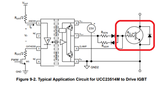 2.数据表的"用于驱动 IGBT 的 UCC23514M 的图9-2典型应用电路"中是否描述了钳位电路?