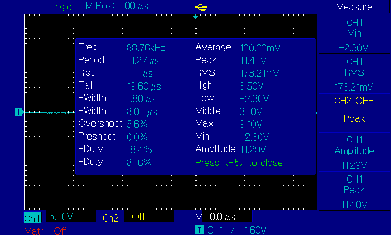 此外、当您使用"scope (范围)"时、打开20MHz 带宽限制。  这将消除波形中的高频噪声。
