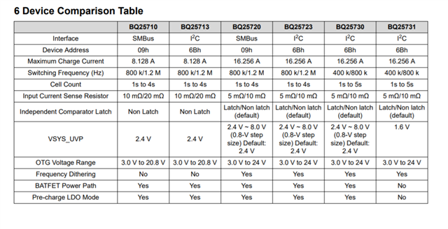 上面的2个比较没有直接比较这两个比较、但您应该能够从它们中提取所需的信息。 例如、如果您知道 BQ25703A/BQ25710之间的差异和 BQ25710/BQ25723之间的差异、那么您就知道 BQ25703A/BQ25723之间的差异。