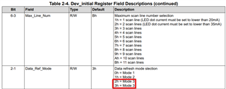 关于 以下应用手册第30~31页上的 Dev_Initial 寄存器(地址= 1h)。