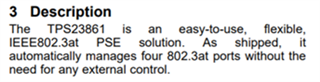 TPS23861支持自动模式、我们不需要外部 MCU 来控制它?