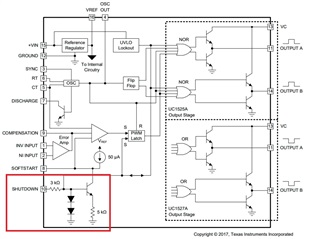 我猜最大电压为5.5V (逻辑输入)、但请让我确认、因为关断引脚是内部 NPN 晶体管的基极、需要偏置电流、如模拟输入。