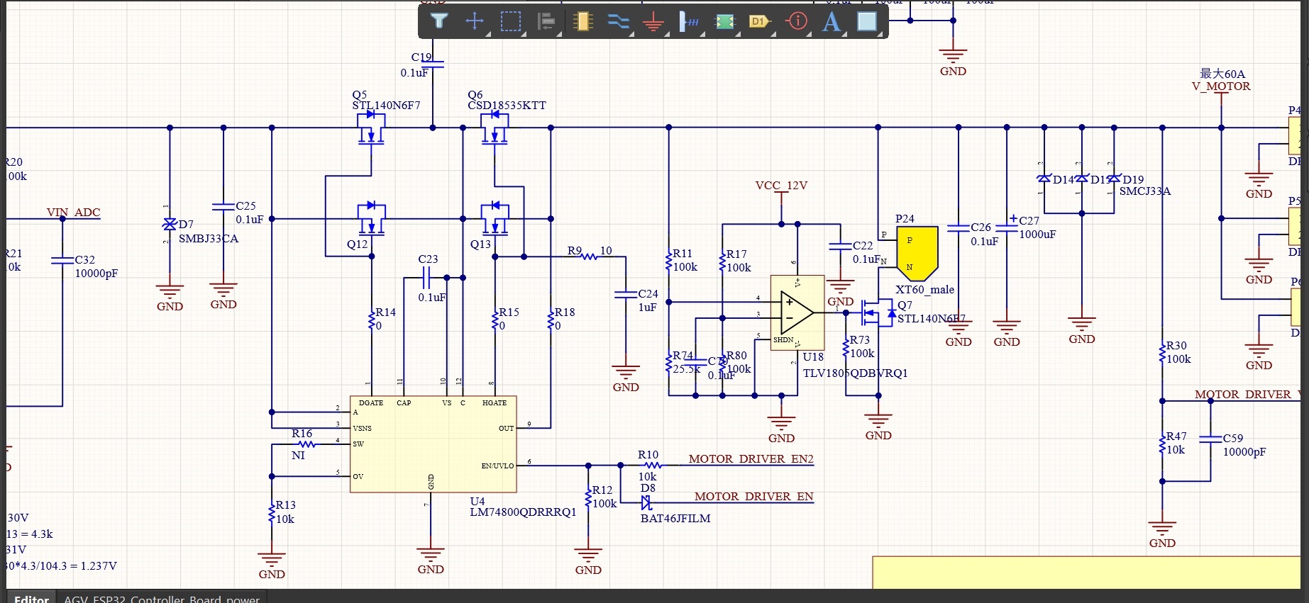 电源输入是20-30V 电池(在运行期间不会充电)、最大输出为60A。 因此使用了并联 MOSFET。