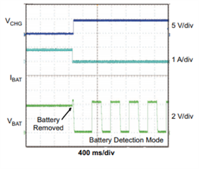 检查数据表、当电池被移除(未连接时)时、脉冲波形如下图所示。 (高电平时的电压约为4.2V、低电平时的电压约为0V)