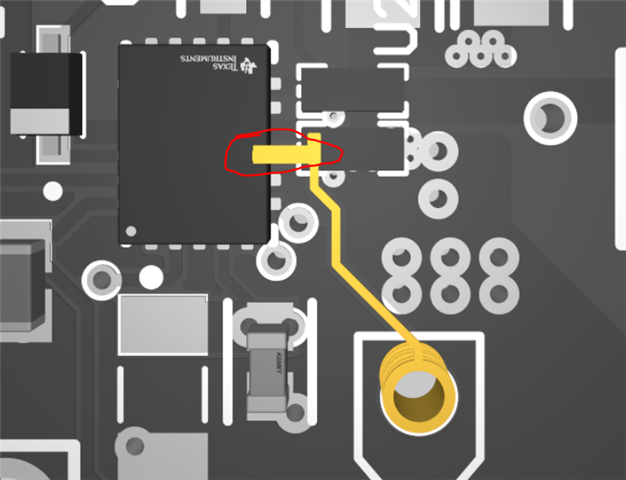 在我们的设计中、它是 Hbridge GaN EPC8010 (Ciss=43pF)栅极驱动器 LMG1210。 从 gatedriver 到 EPC8010的布线超短、如所附图片所示、两者之间没有栅极电阻器。 有用于探测的孔/过孔的走线(与 LMG1210EVM 中的封装相同)。 因此、上升/下降时间应在 ns 内、而我们测量 的是6ns、如示波器迹线所示。 您能帮助我诊断发生了什么情况吗?