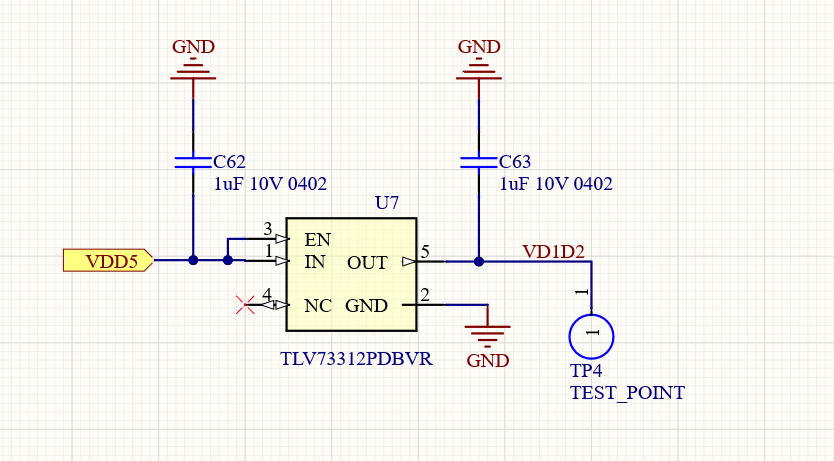 数据表中的引脚5看起来未连接到布局中的任何引脚、引脚4 (NC)是您的 Vout。