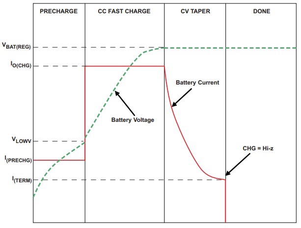 终止电流是由于电池电压接近电池稳压电压电平。 这是恒定电压的一部分、是电池充电曲线的一部分、如下所示。 这样做是为了安全地为电池充电。