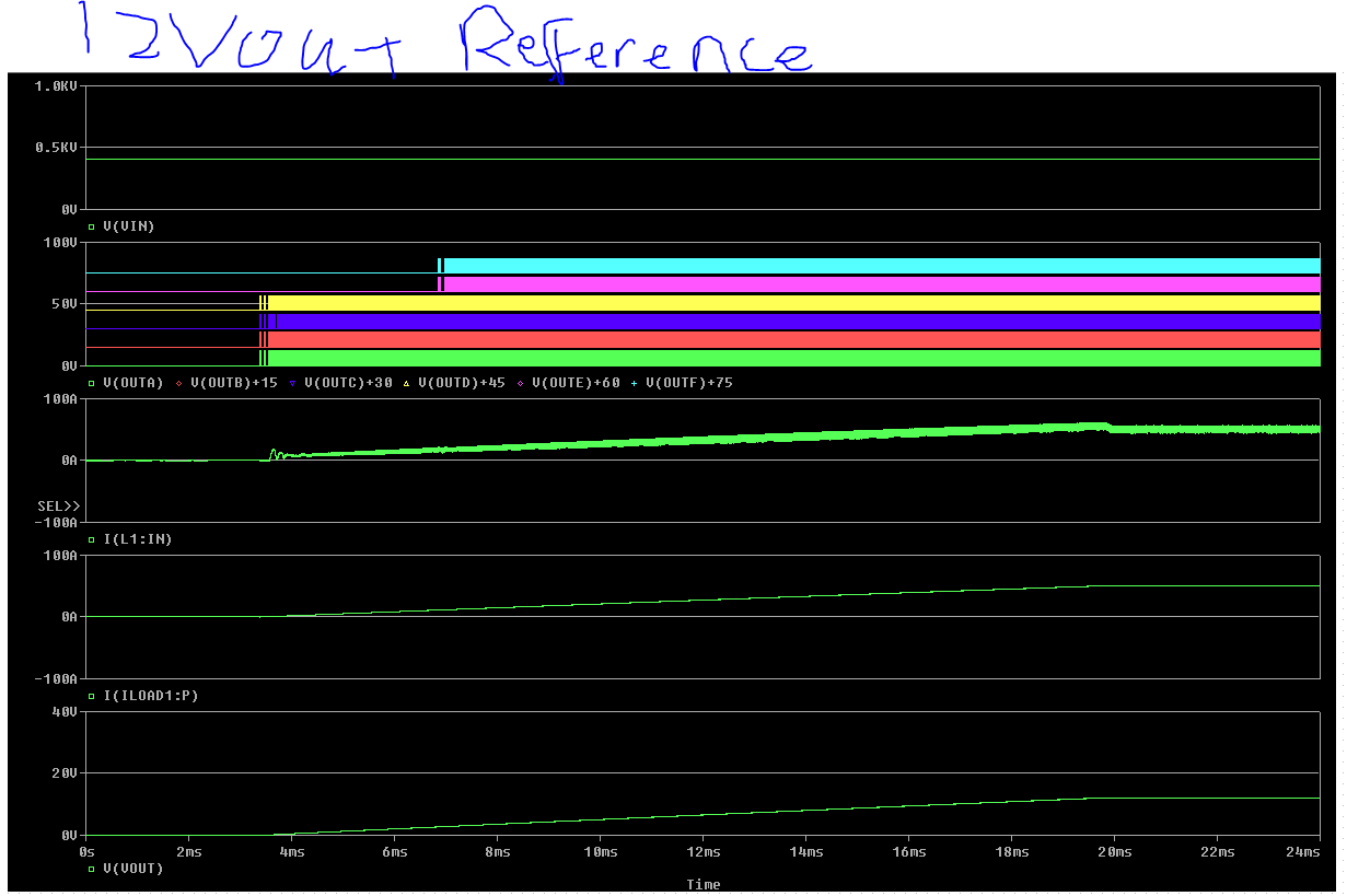 正如您在这里看到的、输出电压不会升高。 此外、L3中的输入电流不会增加、而是会降低。 但是、在基准模型中、输入电流随着输出电压的增加而增加、并且稳定下来。