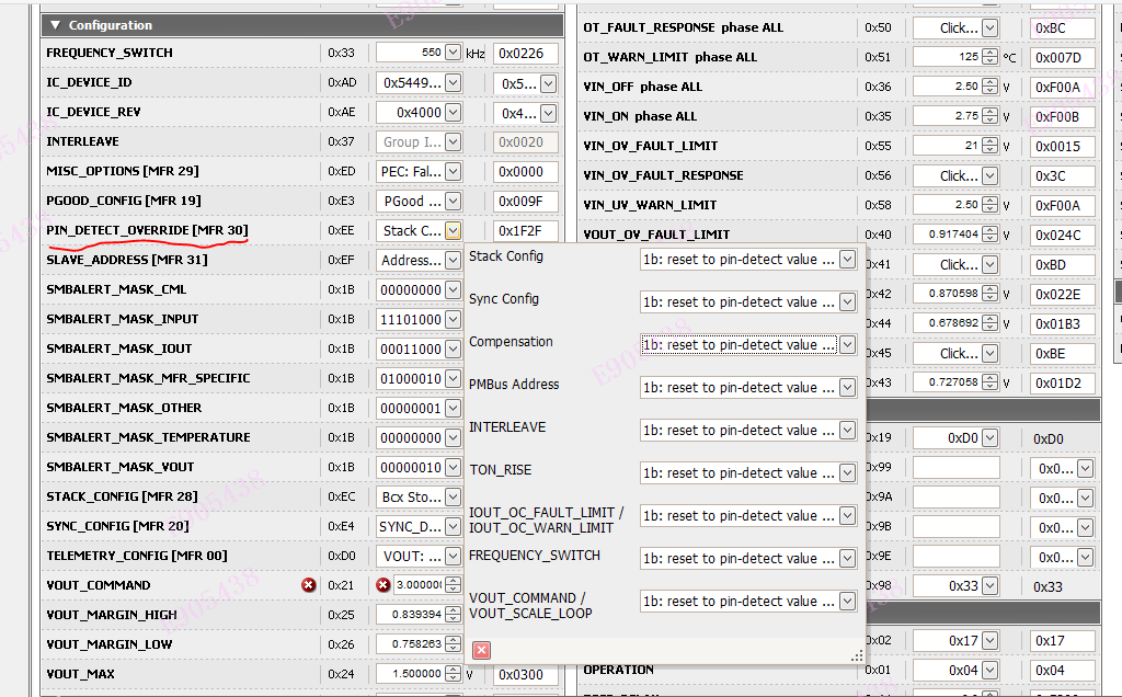 2) 2)更改 PIN_DETECT_OVERRIDE 以加载 VOUT (以及 VOUT_SCALE_LOOP、VOUT_MIN 和 VOUT_MAX)以从 NVM 加载