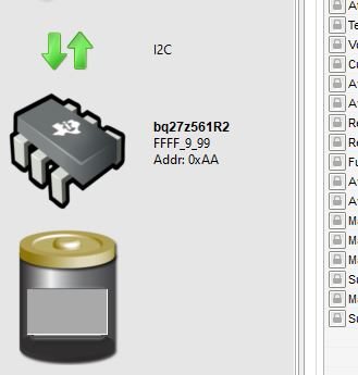 我有一个我一直在开发的 BQ27z561电量监测计。 该系统还在同一总线上使用 BQ25703A 充电控制器 IC。  在平台上进行 FW 开发期间、我们与 IC 进行了良好、稳健的通信。  闪存固件更新为正确的2.01、BQstudio 可以自动看到 IC。  在开发过程中、当使用同样位于同一 I2C 总线上的 LED 驱动器时、我们已经失去了与 IC 的总通信。  板载处理器仅从芯片获取插孔、EVM2400似乎进出 IC、但当它看到 IC 时、它始终会看到错误的 FW、并且无法与任何寄存器通信(下面 BQstudio 的屏幕截图)。  是否有人经历过这种情况、或知道我们可能会如何丢失我们的通信?  它连续发生在3个单元上、因此我们相信软件中存在某种情况、硬件中没有任何迹象表明存在问题。