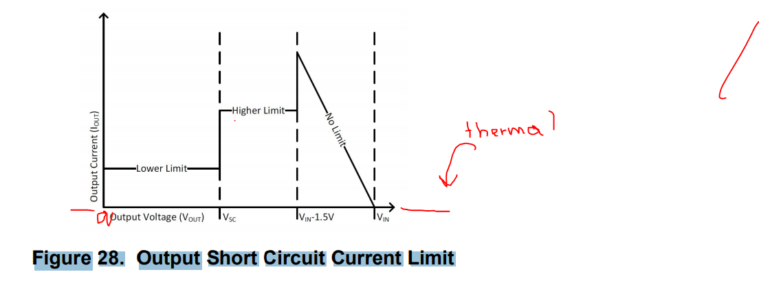 对于非常硬的短路、VOUT 将<=VSC (典型值0.36)、并且可能接近于零。 这是图24/25所示的条件、器件将根据数据集规格进一步降低电流