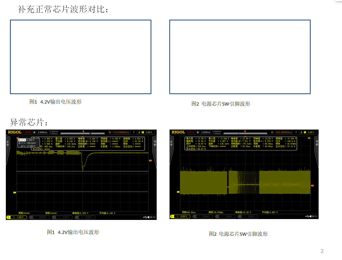 报告中有四个波形图,但都是不良样品的波形测量,请补充四张正常样品的波形测量对比。μ A