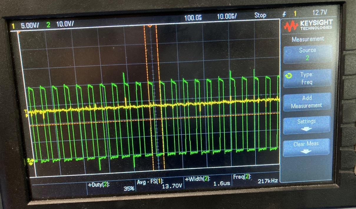 在我的第二个设计(修订版 B)中、我将为并联面板获得良好、高效的充电。 我能够在太阳能输入上看到特征锯齿波形、并且电流稳定。 我注意到、尽管我们的最大额定功率大约为18V 或更高、但通常控制器稳定的电压接近15V、并且通常低于15V。 我无法确认这是因为我们的面板相对于太阳的入射角还是其他因素。 但是、通常情况下、该控制器适用于12V 电池上的并行面板。