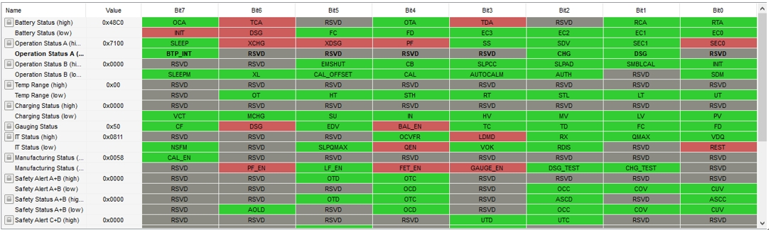 我们有一个使用 BQ28Z610的案例。 样本中的值。 我们发现一些电池无法充电和放电。 这意味着无法激活它。 我们将电池连接到 Battery Management Studio、发现设置了一些电池 PF。 在我们清洁 PF 后、电池正常。