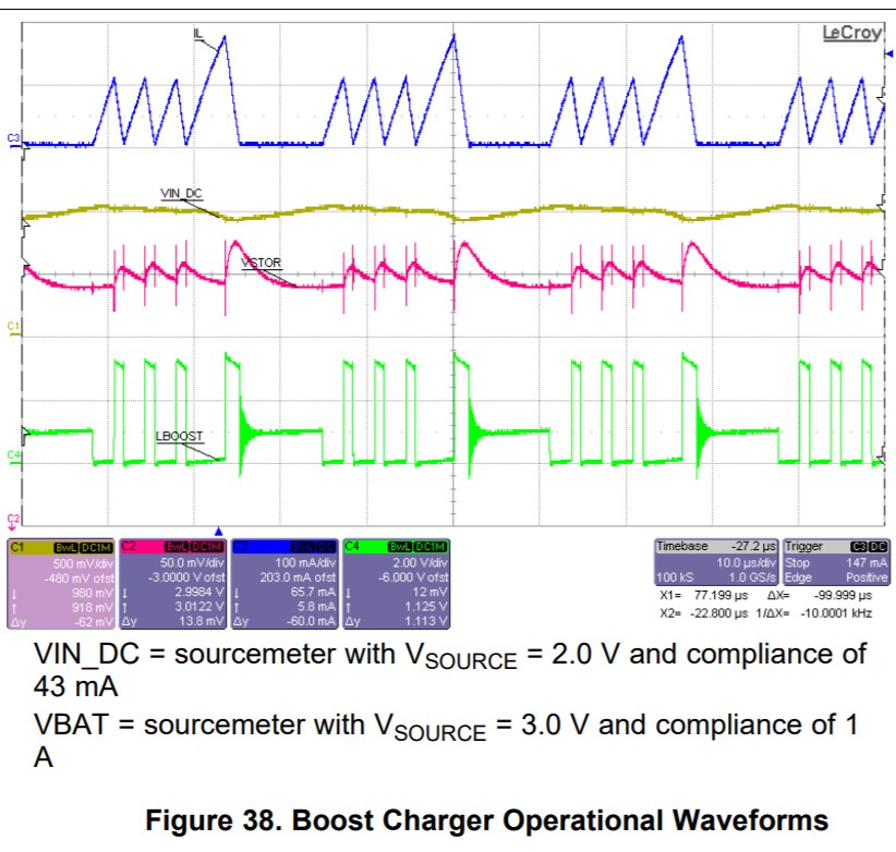 LBOOST 和 VIN_DC 的波形与上一篇文章中的波形相同。 如果 VIN_DC 小于2V、 那么 VSTORE 时我们也得到4.1V、但电流会更小、因此请检查原理图一次、并建议解决方案为我们的应用获取最大电流。