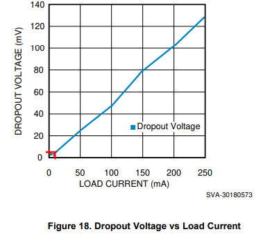 当输入低于目标 LDO 输出 (或更准确地低于标称输出电压加上负载电流处的压降电压)时、LDO 处于称为压降的工作区域。 LDO 在压降时不会关闭、但输出不再稳压到标称输出电压- LDO 基本上会在电源电压下降时跟踪输入电压。