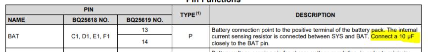 关于 bq25610 BAT 引脚电容器、建议值为10uF、为什么在这里需要10uF?