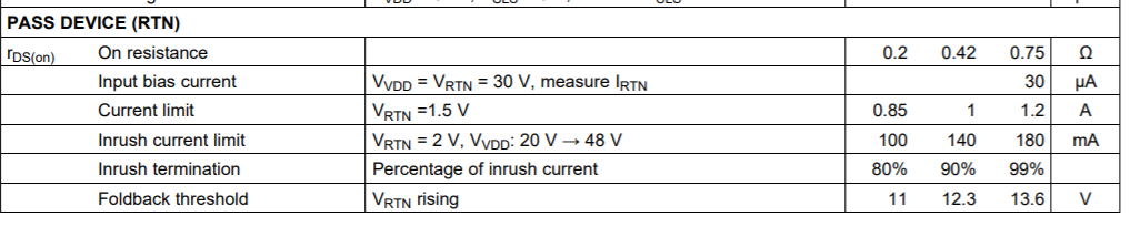 流经 IC 的电流是流经内部热插拔 MOSFET 的电流、该 MOSFET 在导通时连接 VSS 和 RTN。 电流限制可在第5页底部的数据表中找到。 但是、PSE 不支持超过13W 的功率、因此在功率从 PSE 折返之前、您不会达到 IC 的电流限制。