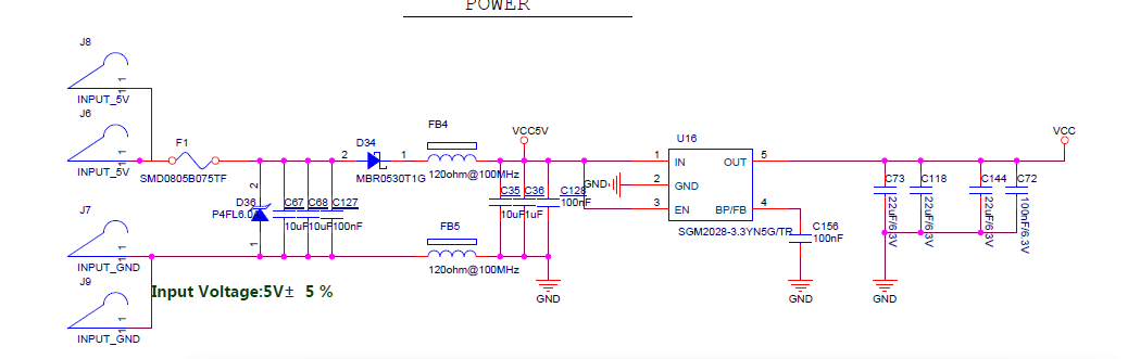 最后、如您所述、TLV755P 的电流限制通常在700mA 时高于 SGM2028-3.3、因此可能需要提高 D34的额定电流、以避免在启动或其他电流限制事件期间造成损坏。