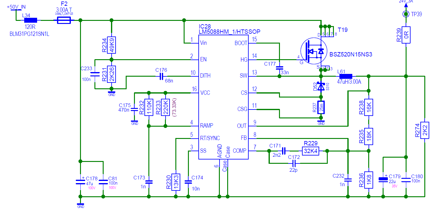 我现在的问题是、在某些器件上、电源始终良好(3A 时为24V)、但在某些器件上、在2A 至2.5A 的负载下、电压下降至大约15V、而低于15V