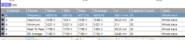 请参阅以下输出的迹线和迹线测量(在 Cout 测得)。