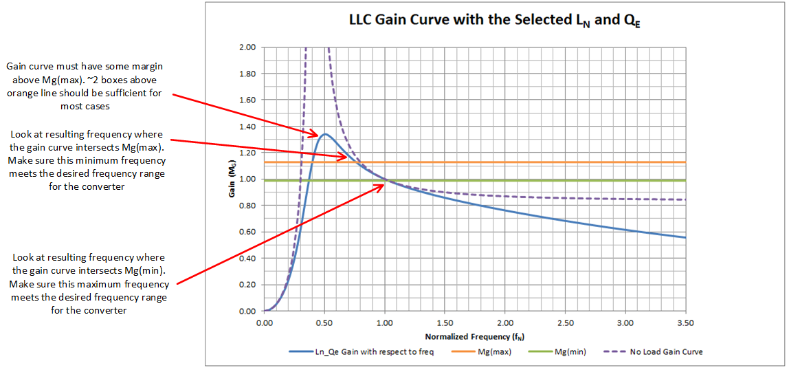 关于增益曲线、该曲线必须大于曲线上沿曲线的某个点所需的最大增益、然后电容区的增益曲线会随着开关频率的降低而开始减小。 理想增益曲线将能够在所需频率范围内通过 mg (max)和 mg (min)、并且具有高于 mg (max)的一定裕度。