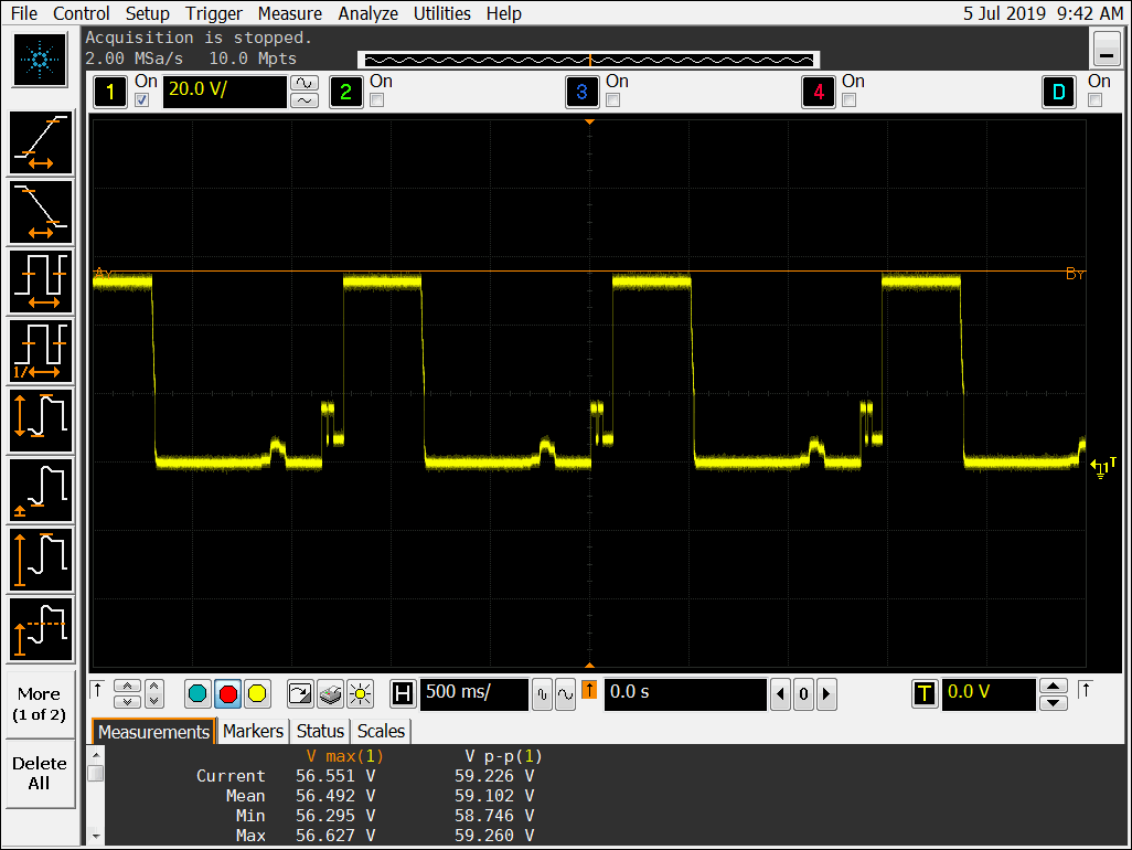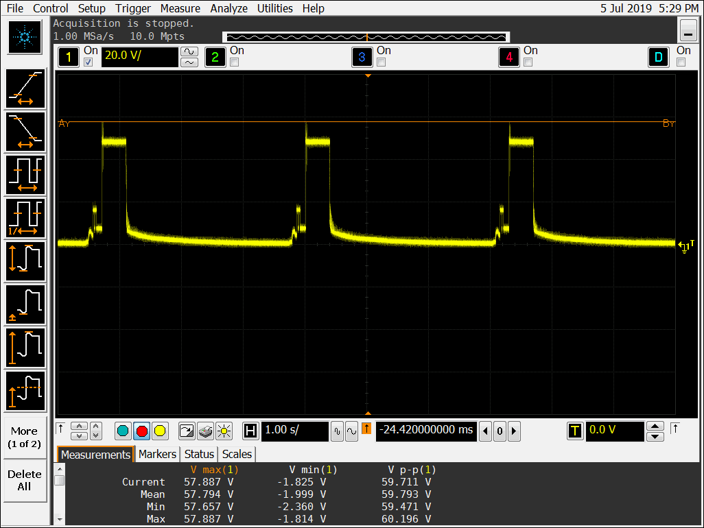 下面的波形是在没有 TPS54360/B1的情况下进行测试的