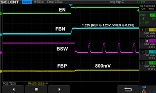 大家好、我有板回来、由于我无法弄清楚原因、在原型板上切换 BSW 信号。 我认为电感器可能会饱和、因此我换用了两个4.7uH 5A Isat 电感器(MDWK40T4R7MM)、但行为相同。 该原理图与 TPS65131规格中的图8-1相同(除了 C1为10uF、R7为22欧姆、C3为1uF)。 二极管为20V/1A 肖特基二极管(对于降压、可能应该更大、我将进行修复)。 输入电压为5V、输出电压为+/-15V。